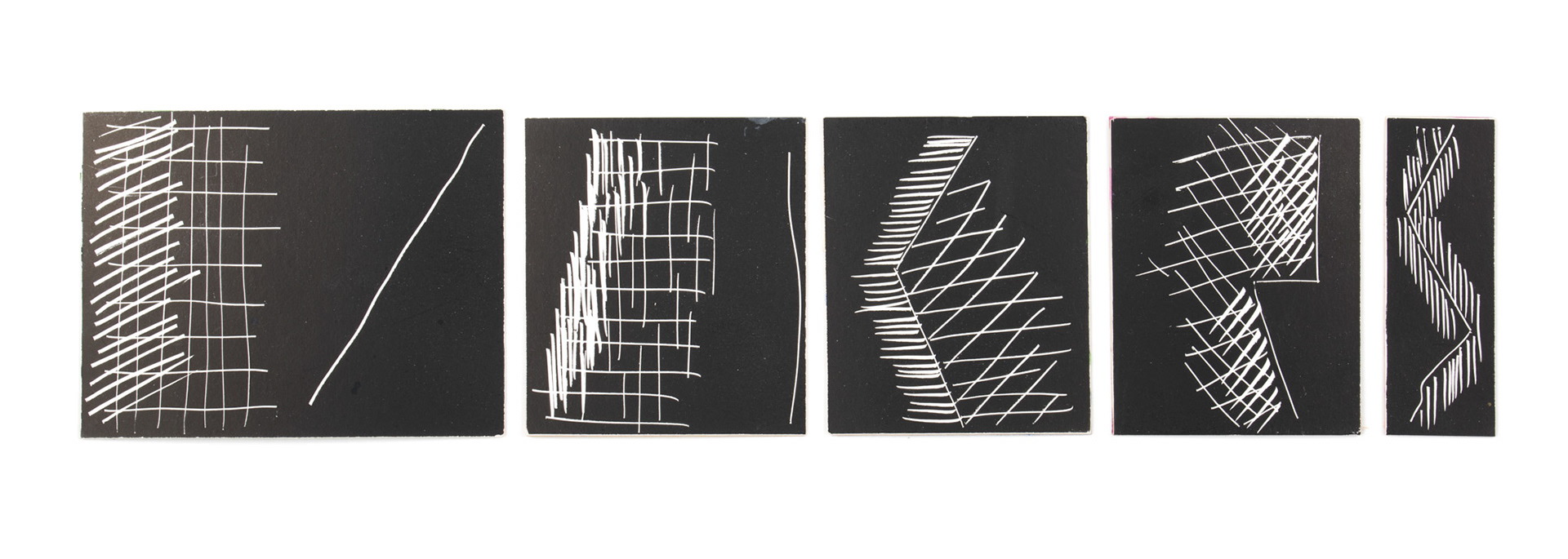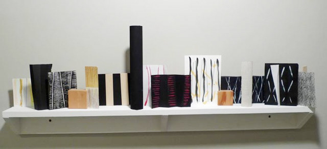 Small 'desk' works made of wood, paper, paint, graphite and ink.